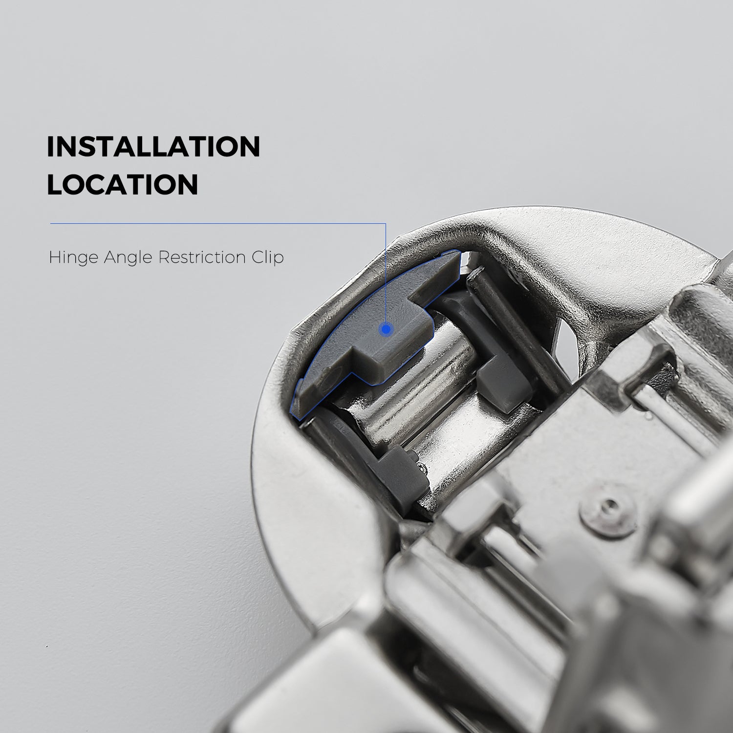- Limit angle:This cabinet hinge restrictor clip can prevent the door from opening more than 90 degrees.